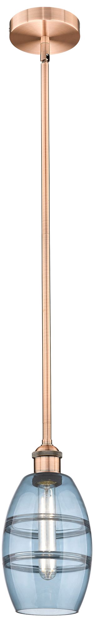 Edison Vaz 5.88"W Copper Stemmed Mini Pendant w/ Princess Blue Shade