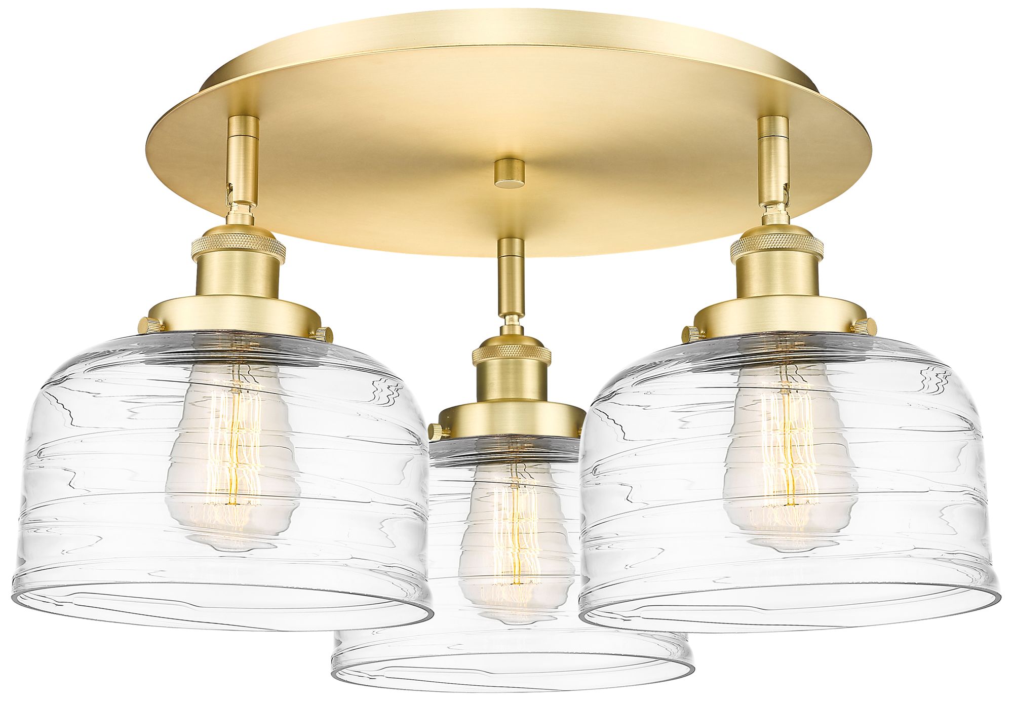 Bell 19.75"W 3 Light Satin Gold Flush Mount w/ Clear Deco Swirl Glass
