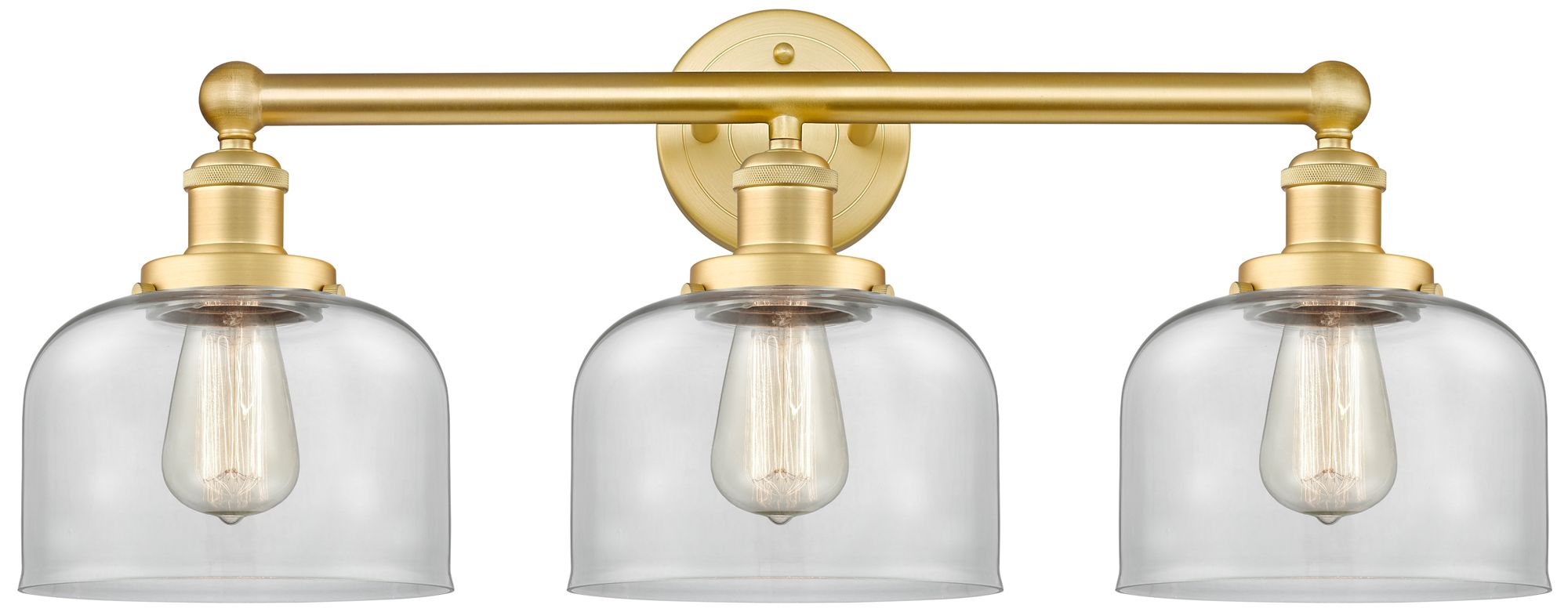 Edison Large Bell 24.5"W 3 Light Satin Gold Bath Light With Clear Shad