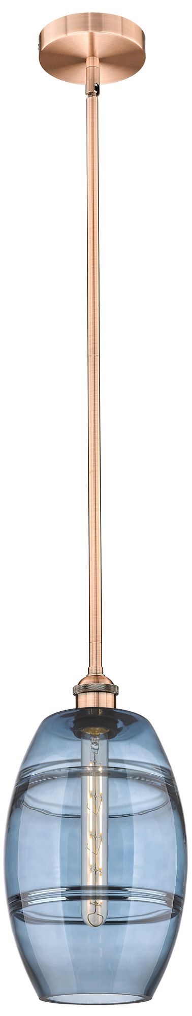 Edison Vaz 8"W Antique Copper Stemmed Mini Pendant w/ Princess Blue Sh