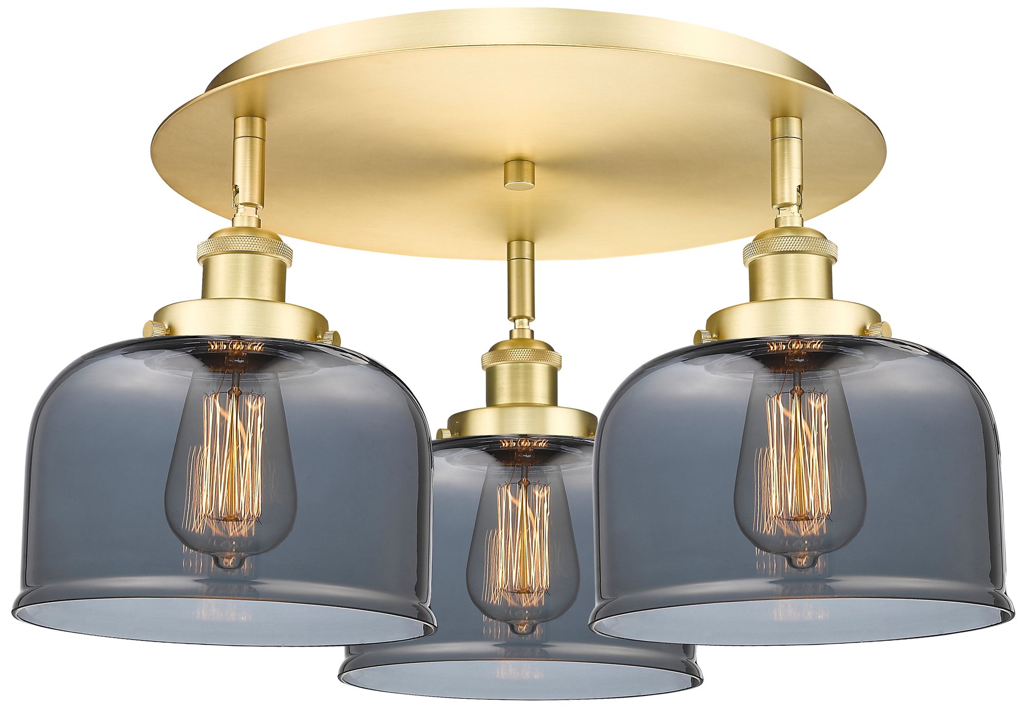 Bell 19.75"W 3 Light Satin Gold Flush Mount With Plated Smoke Glass Sh