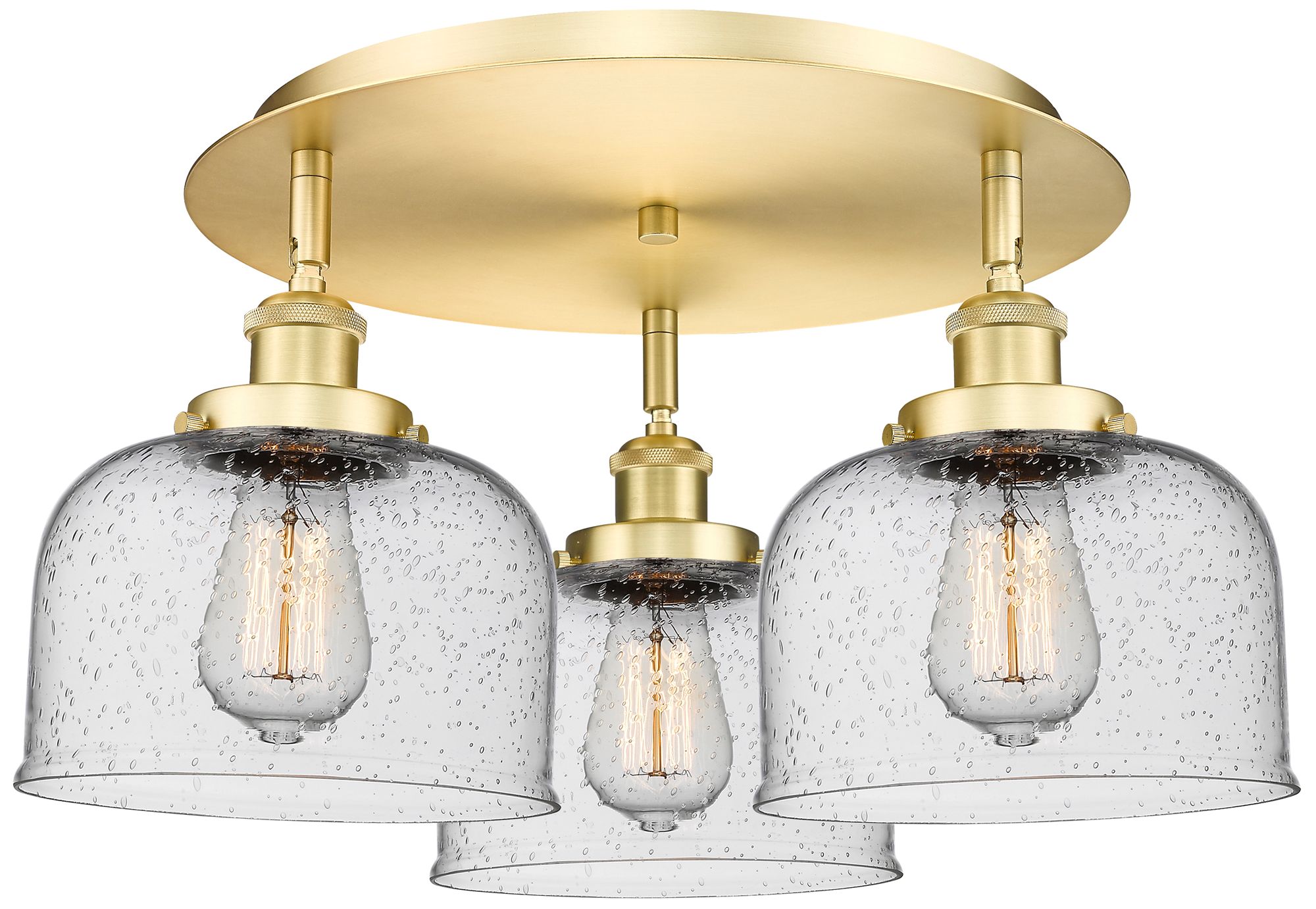 Bell 19.75" Wide 3 Light Satin Gold Flush Mount With Seedy Glass Shade