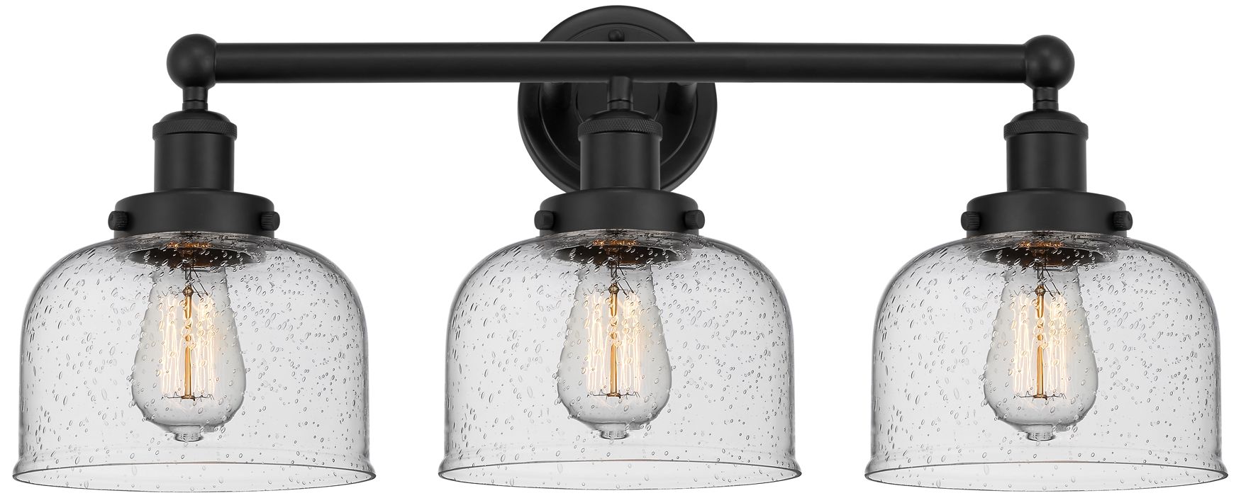 Bell 25 3/4"W Matte Black 3-Light Bath Light w/ Seedy Glass