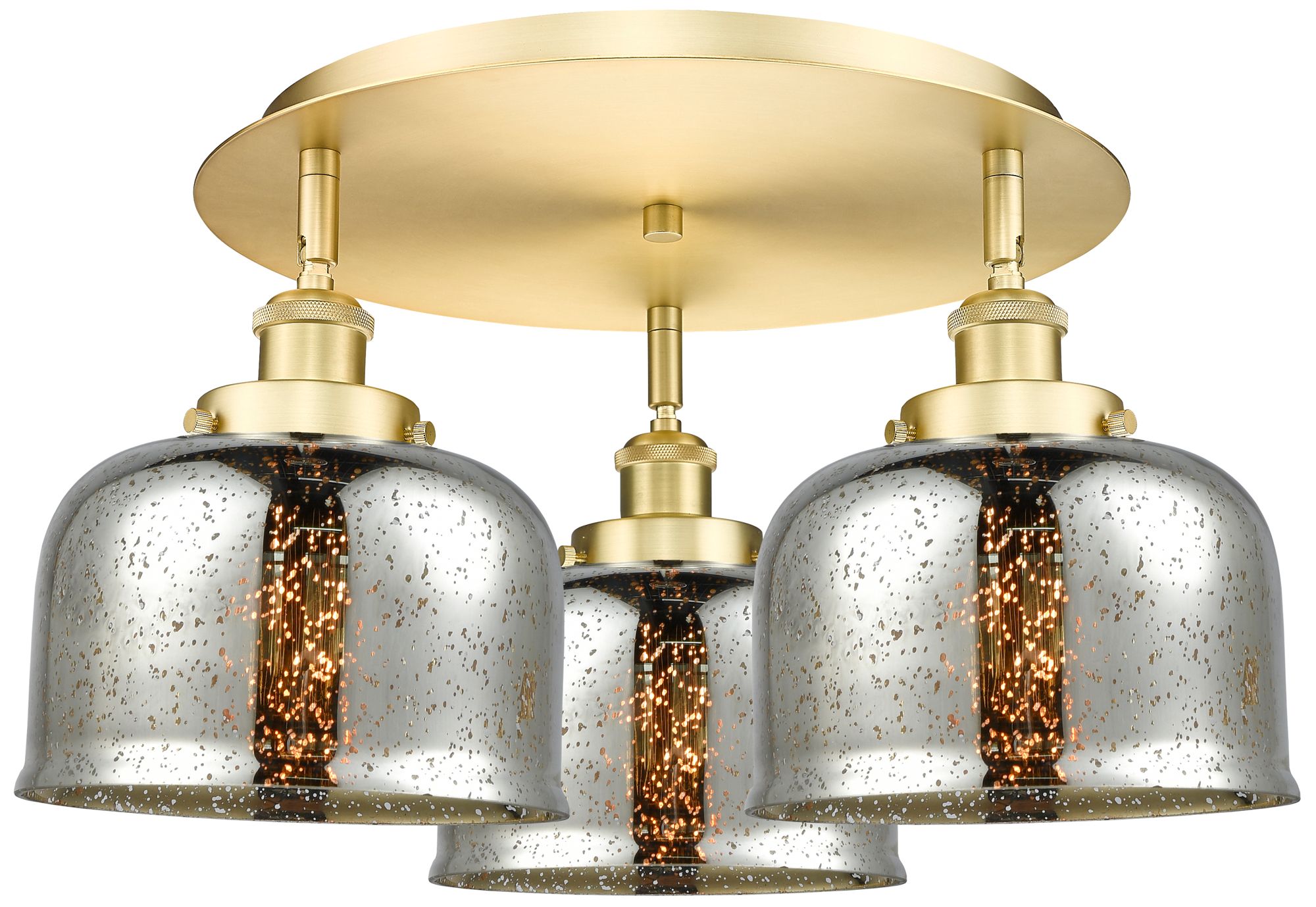 Bell 19.75"W 3 Light Satin Gold Flush Mount w/ Mercury Glass Shade