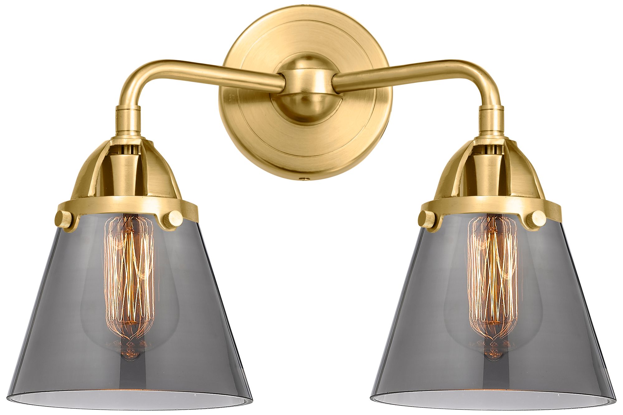 Nouveau 2 Cone 6" 2 Light 14" LED Bath Light - Satin Gold - Smoke