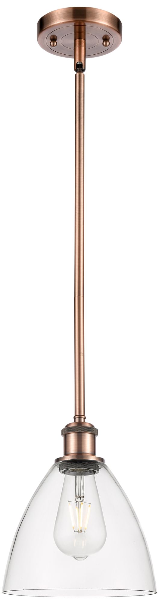 Bristol Glass 8" Mini Pendant - Antique Copper - Clear Shade