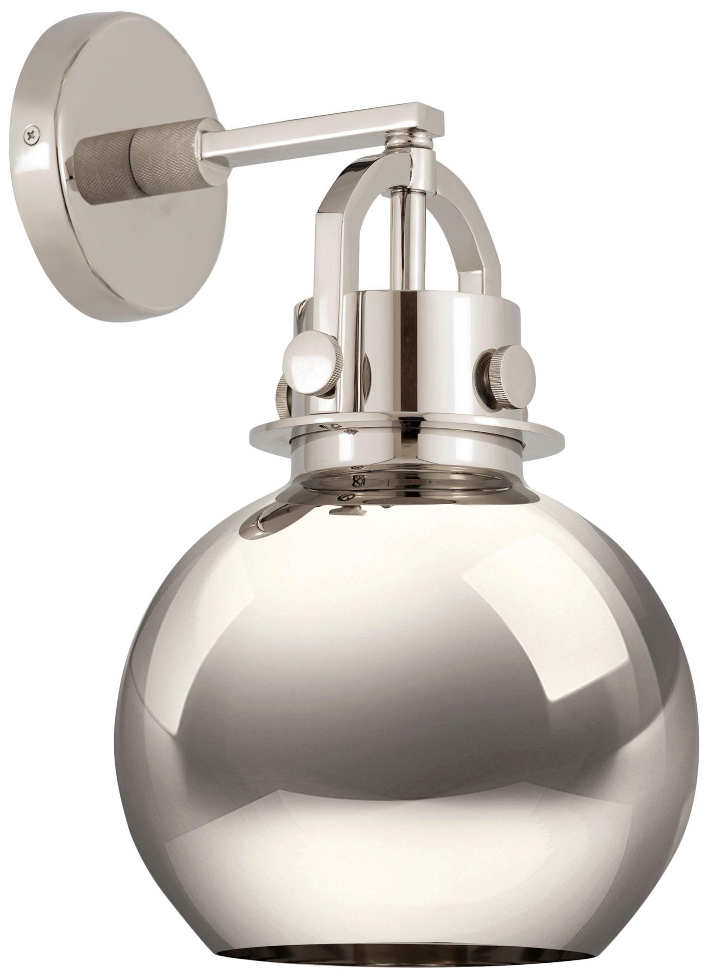 Newton Metal Sphere 14" High Polished Nickel Sconce w/ Nickel Shade