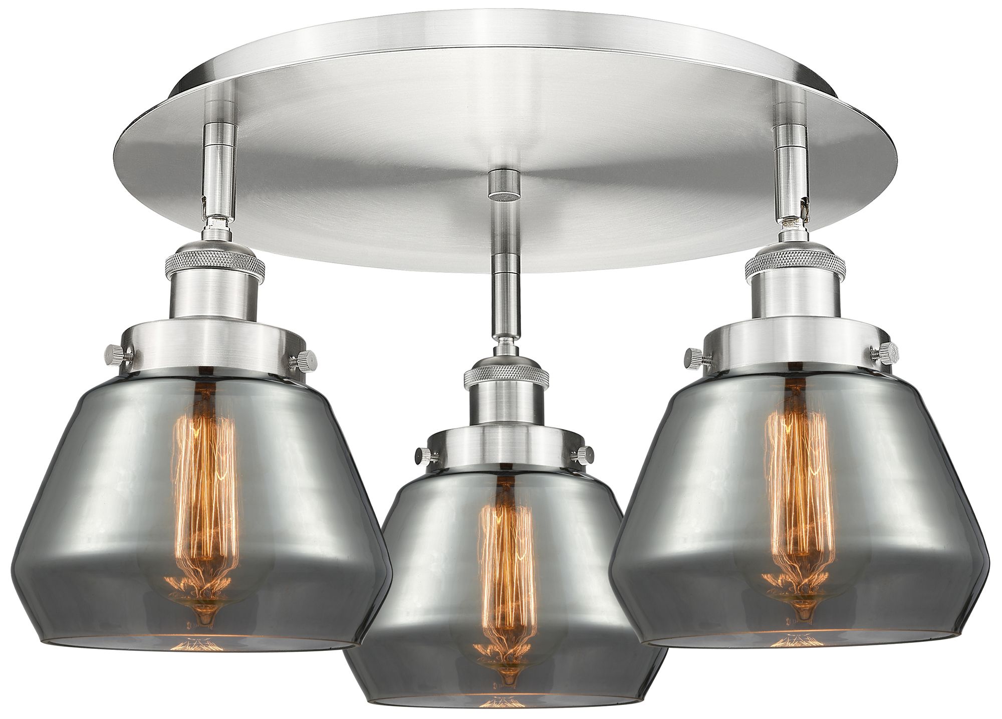Fulton 18.25"W 3 Light Satin Nickel Flush Mount w/ Plated Smoke Glass