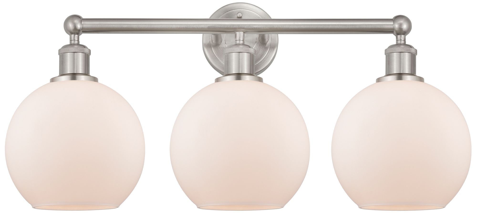 Athens 26"W 3 Light Satin Nickel Bath Vanity Light With Matte White Sh