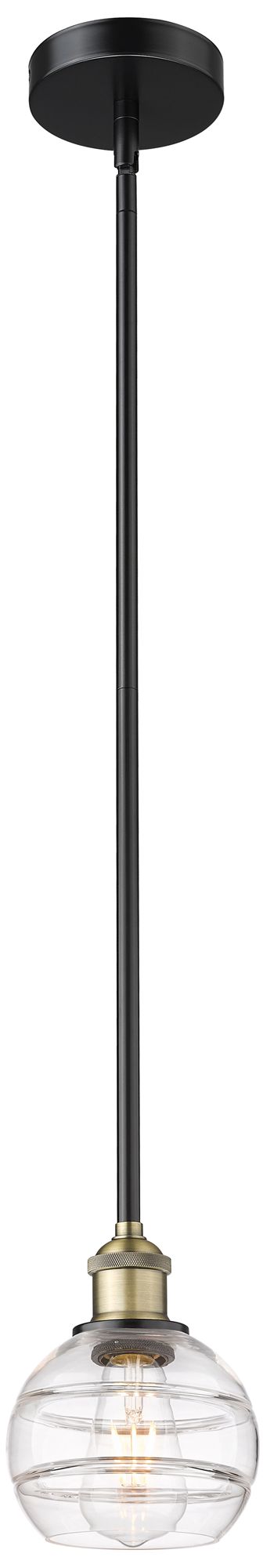 Edison Rochester 5.88"W Black Brass Stemmed Mini Pendant w/ Clear Shad