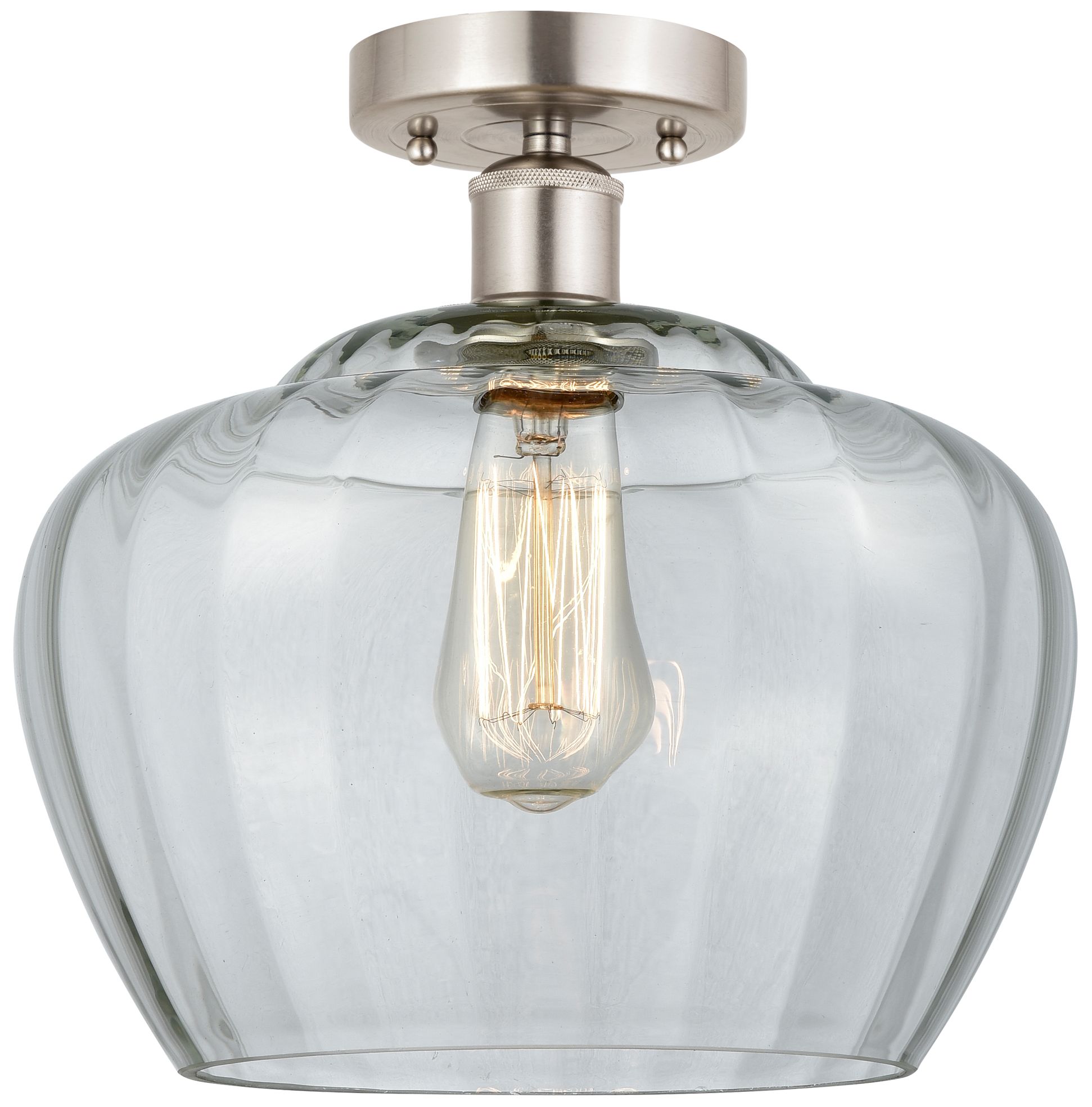 Edison Fenton 11" Brushed Satin Nickel Semi Flush Mount w/ Clear Shade