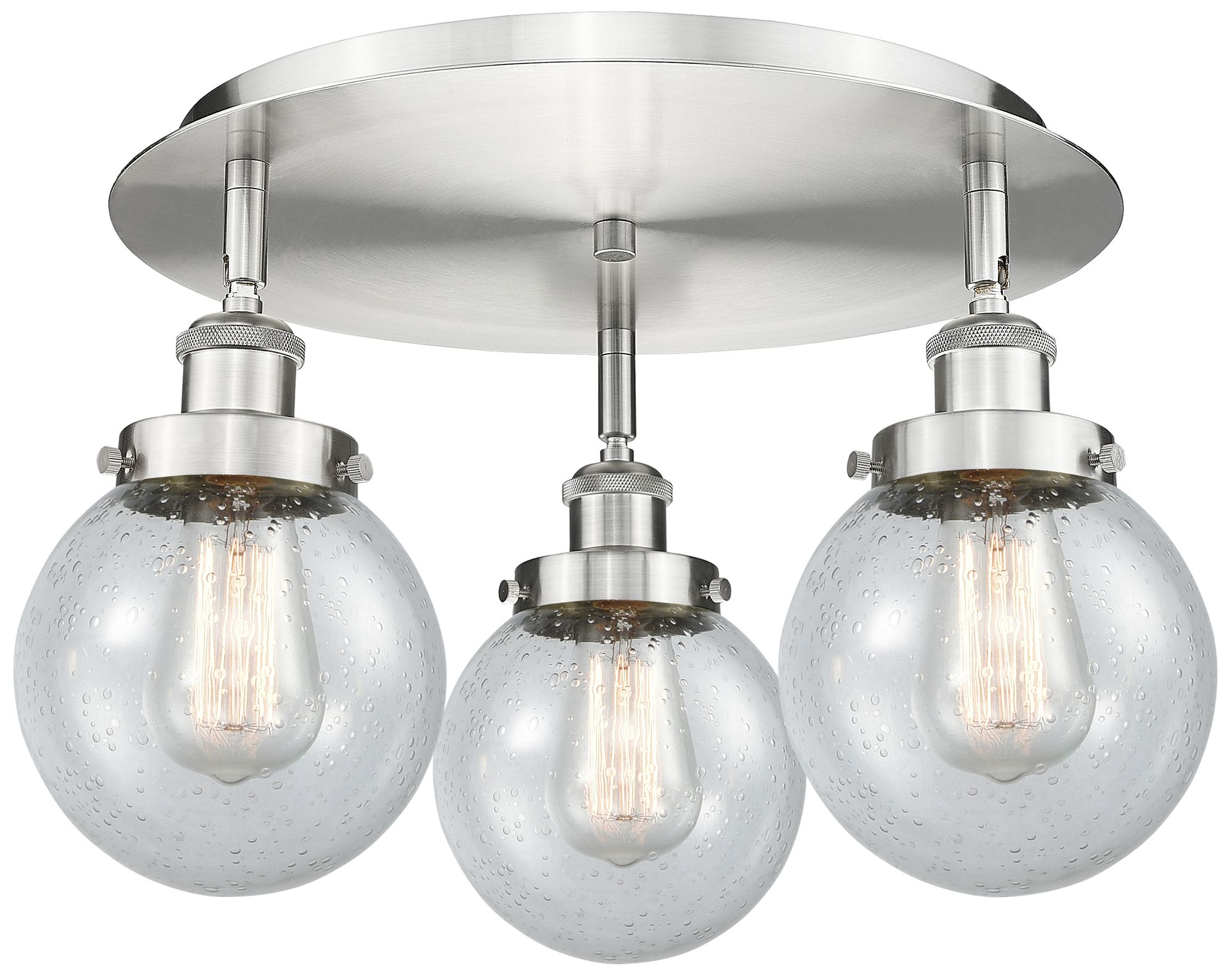 Beacon 17.75" Wide 3 Light Satin Nickel Flush Mount With Seedy Glass S
