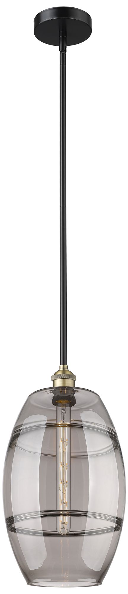 Edison Vaz 10"W Black Brass Stemmed Mini Pendant w/ Light Smoke Shade
