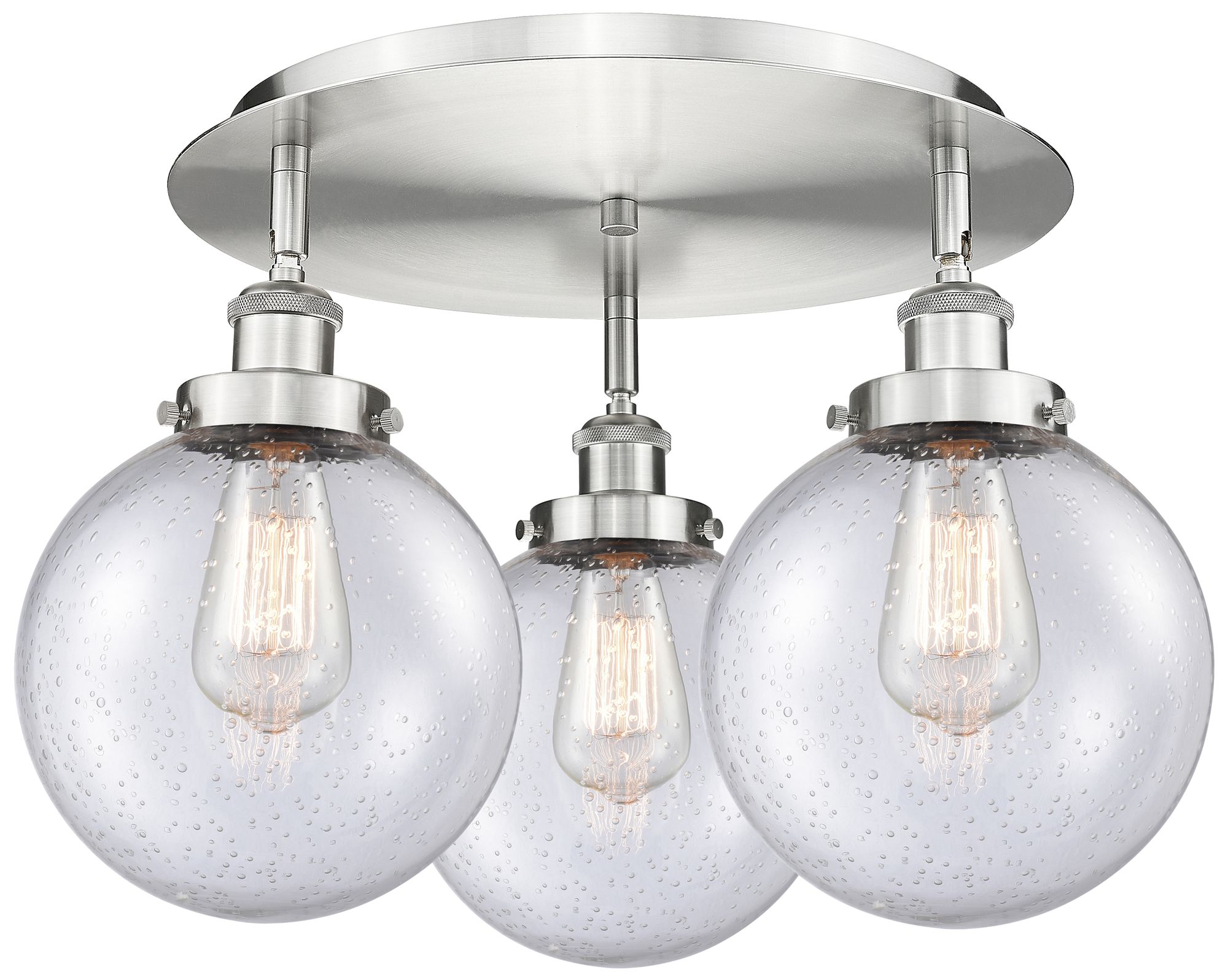 Canton 19.75" Wide 3 Light Satin Nickel Flush Mount With Seedy Glass S
