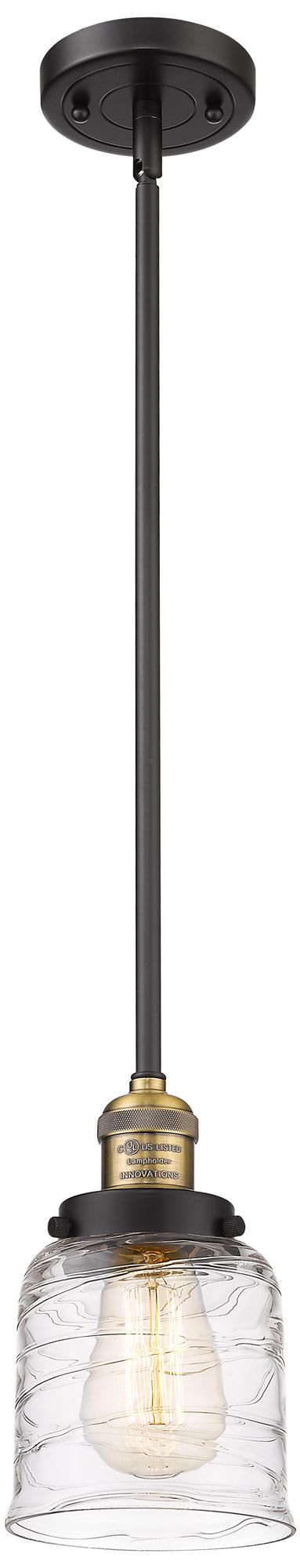 Franklin Restoration Bell 5" Black Brass Stemmed Mini Pendant w/ Deco