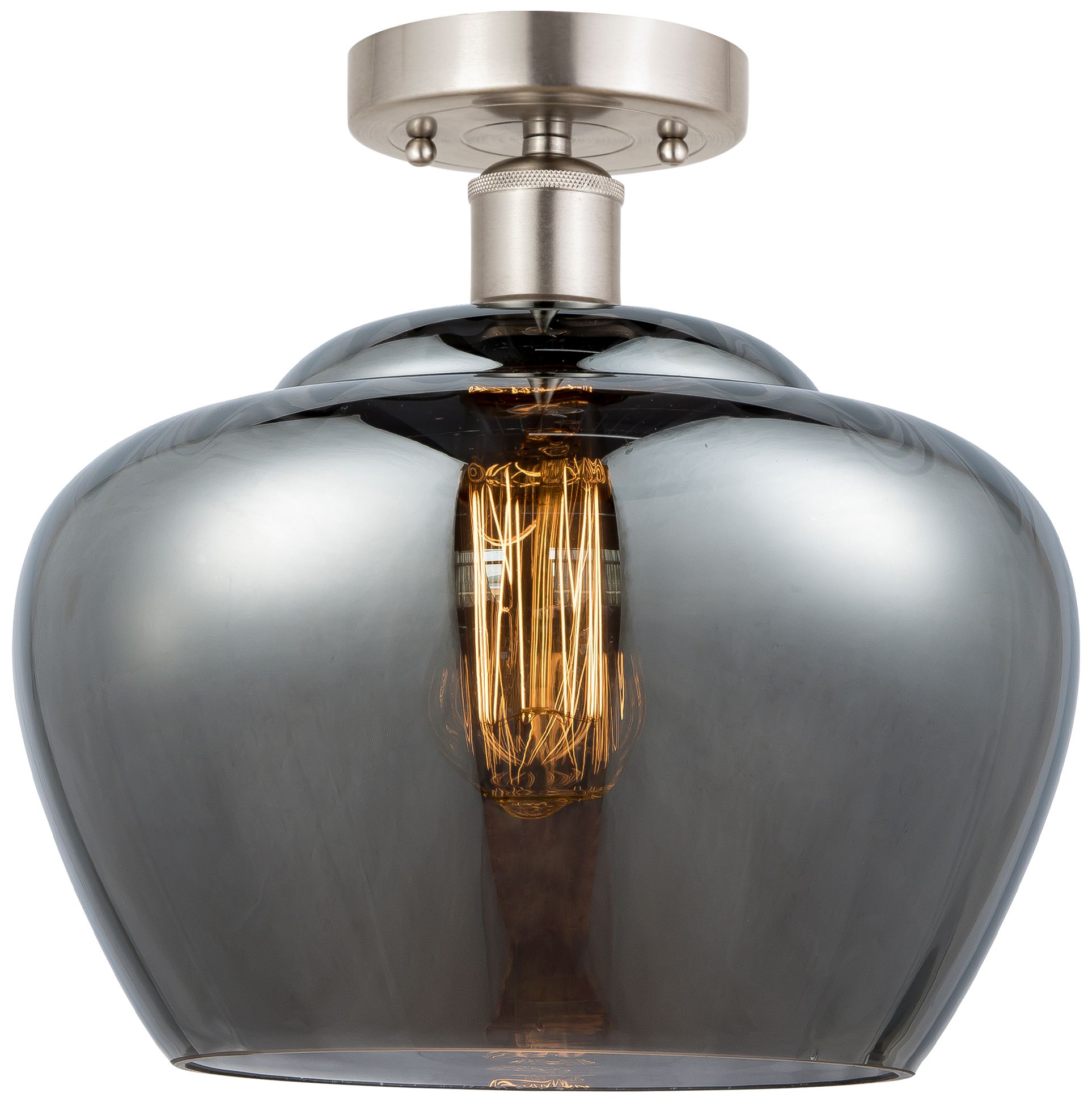 Edison Fenton 11" Brushed Satin Nickel Semi Flush Mount w/ Smoke Shade