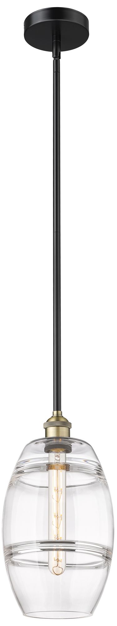 Edison Vaz 8" Wide Black Antique Brass Stemmed Mini Pendant w/ Clear S