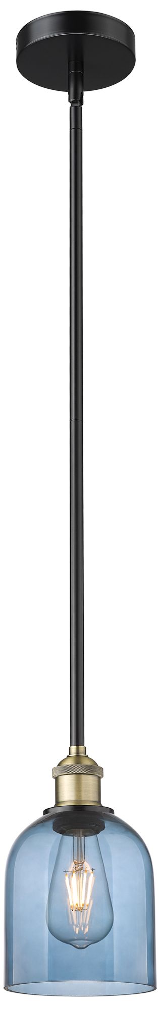 Edison Bella 5.5"W Black Antique Brass Stemmed Mini Pendant w/ Blue Sh