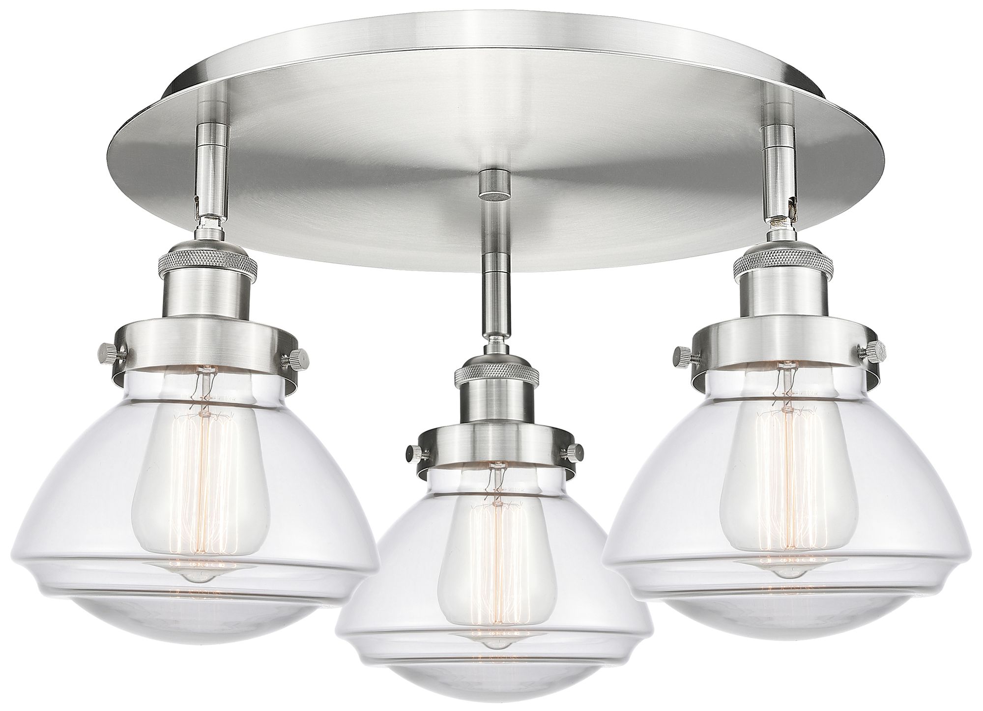 Olean 18.25" Wide 3 Light Satin Nickel Flush Mount With Clear Glass Sh