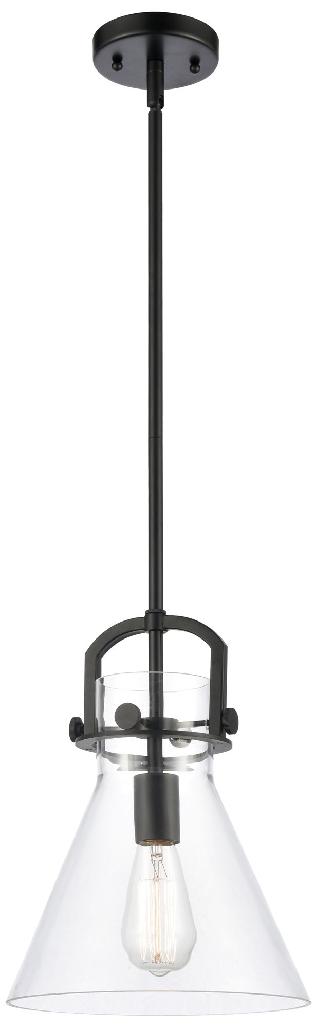 Newton Cone 10" Wide Matte Black Stem Hung Pendant With Clear Shade