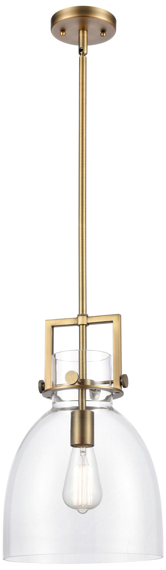 Newton Bell 10" Wide Brushed Brass Stem Hung Pendant With Clear Shade