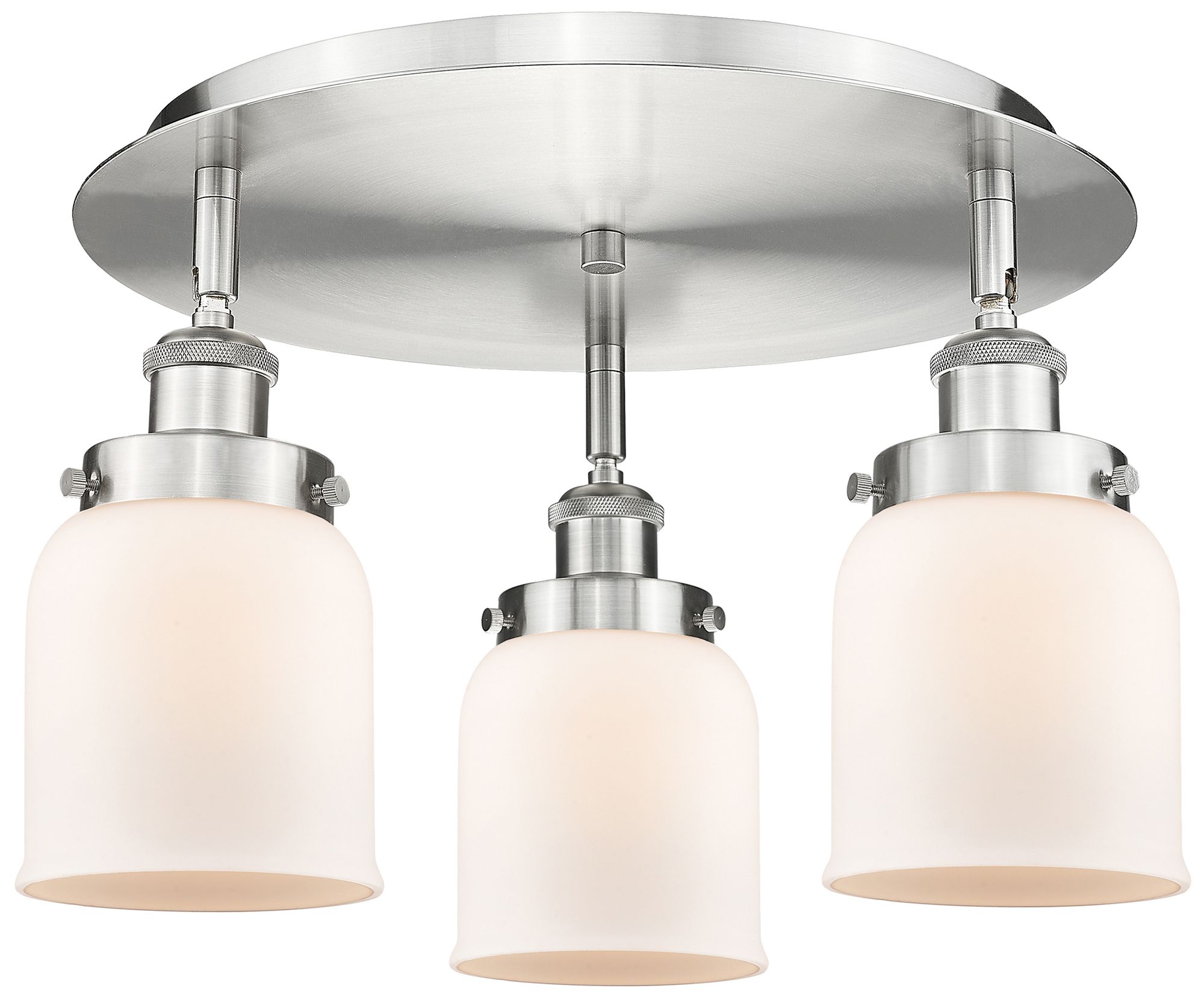 Bell 16.75"W 3 Light Satin Nickel Flush Mount With Matte White Glass S