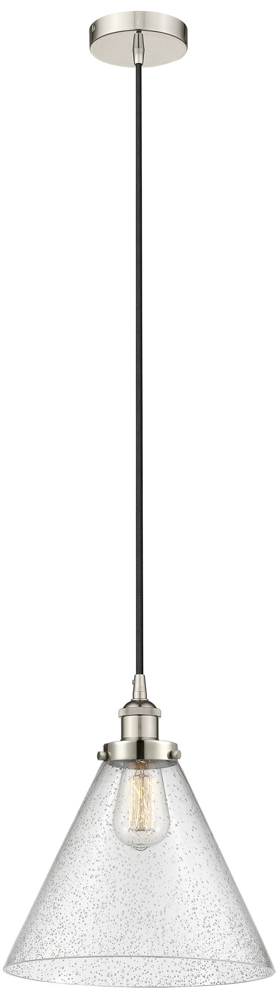 Cone 12" LED Mini Pendant - Polished Nickel - Seedy Shade