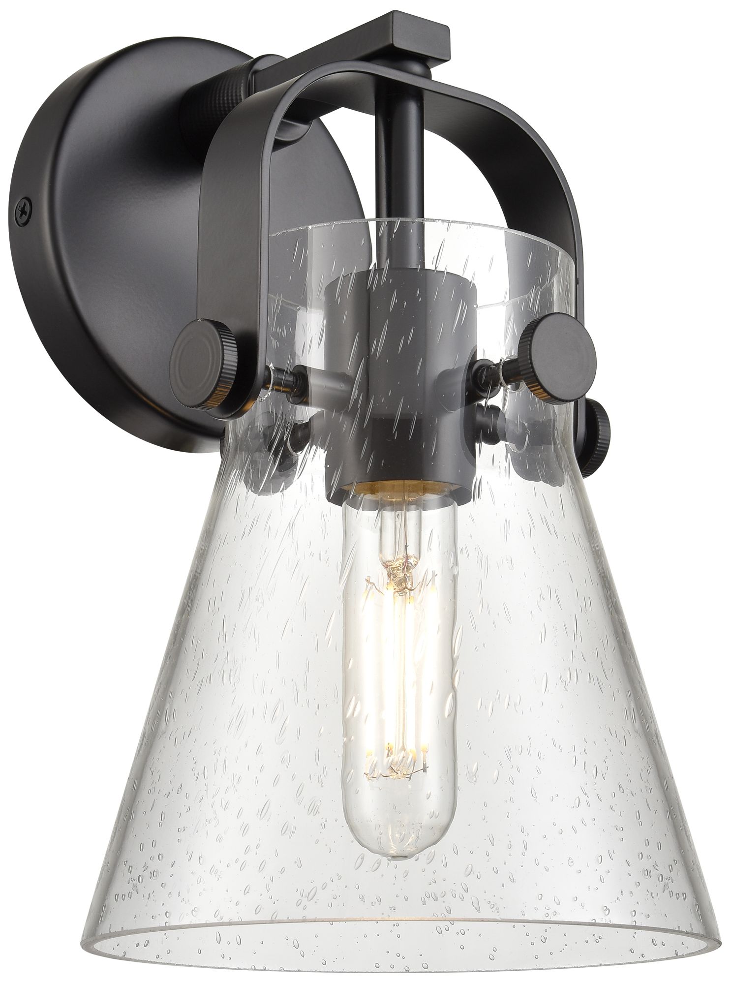 Pilaster II Cone 9.75" High Matte Black Sconce With Seedy Shade