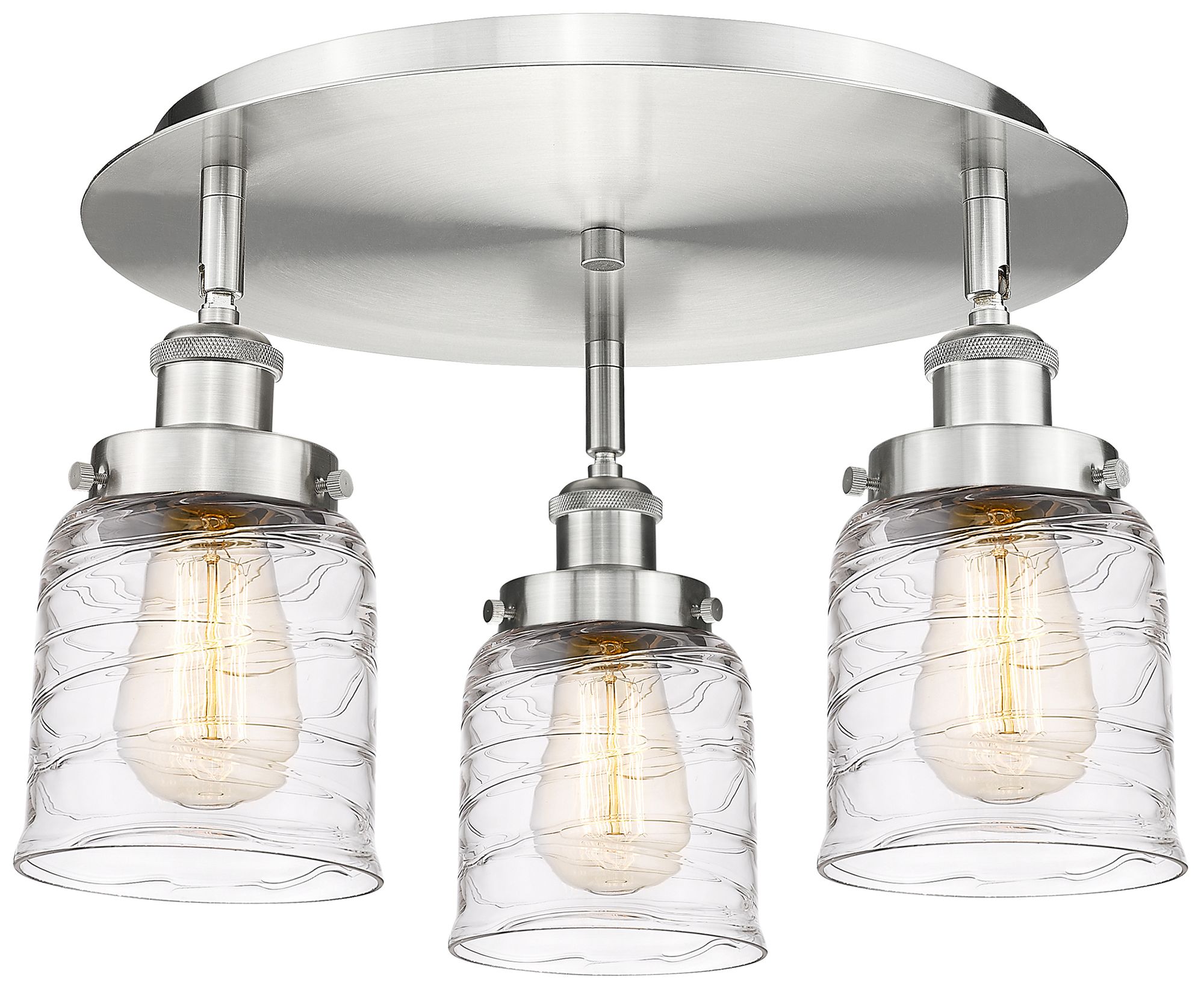 Bell 16.75"W 3 Light Satin Nickel Flush Mount w/ Clear Deco Swirl Shad