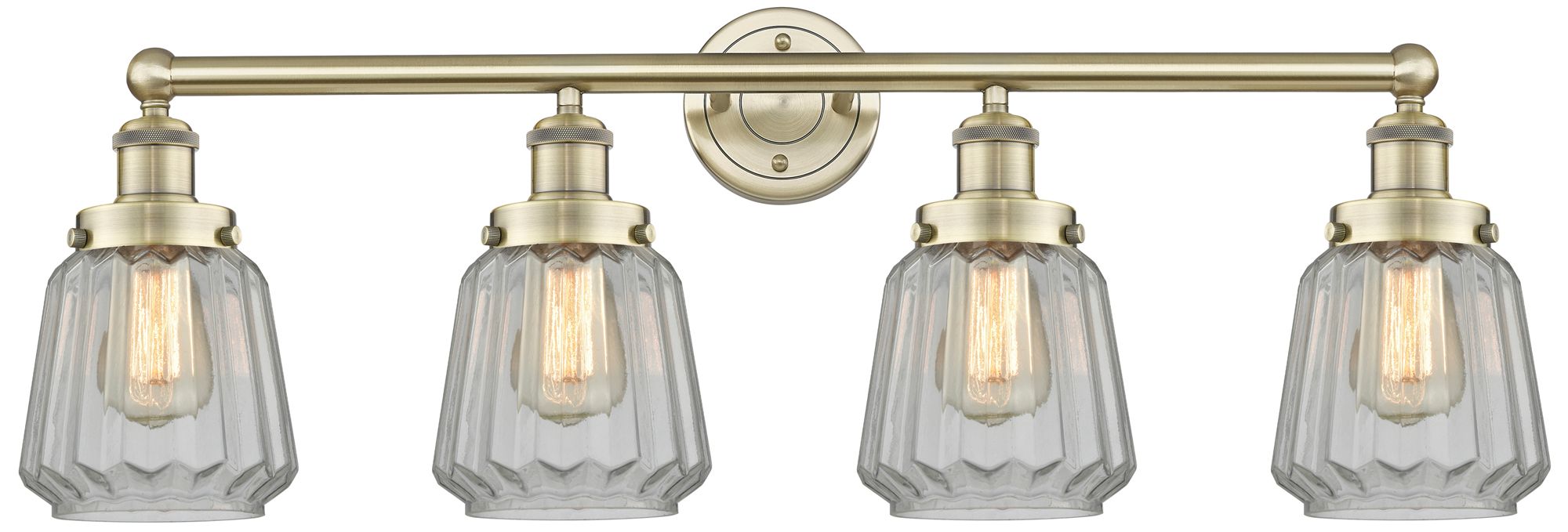 Chatham 33.5"W 4 Light Antique Brass Bath Vanity Light With White Shad