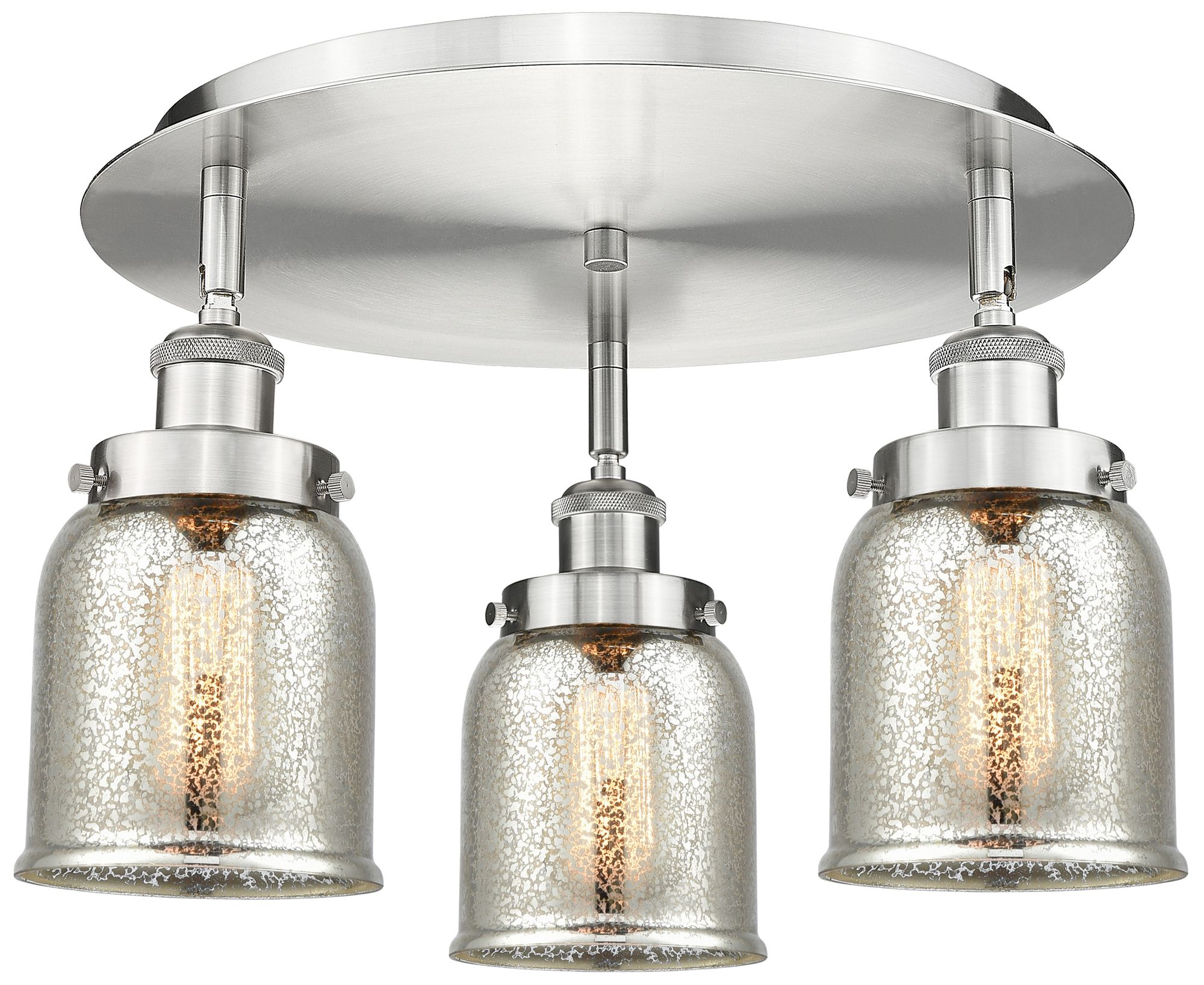 Bell 16.75"W 3 Light Satin Nickel Flush Mount w/ Mercury Glass Shade