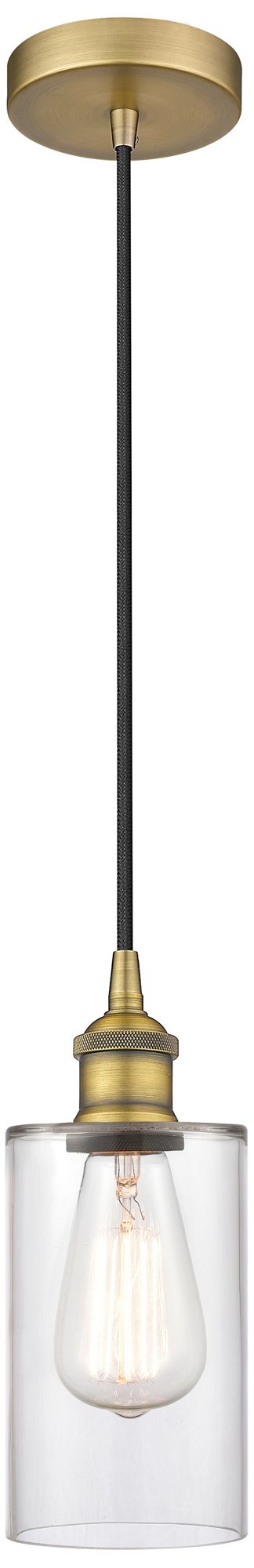 Edison Clymer 4" Brushed Brass Cord Hung Mini Pendant w/ Clear Shade