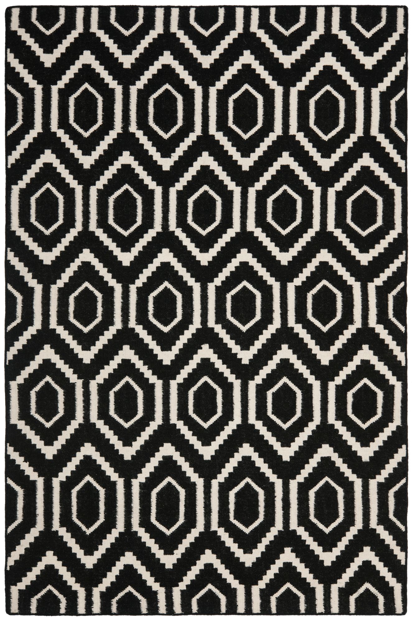 Safavieh Dhurrie DHU556L 3'x5' Black/Ivory Wool Rug