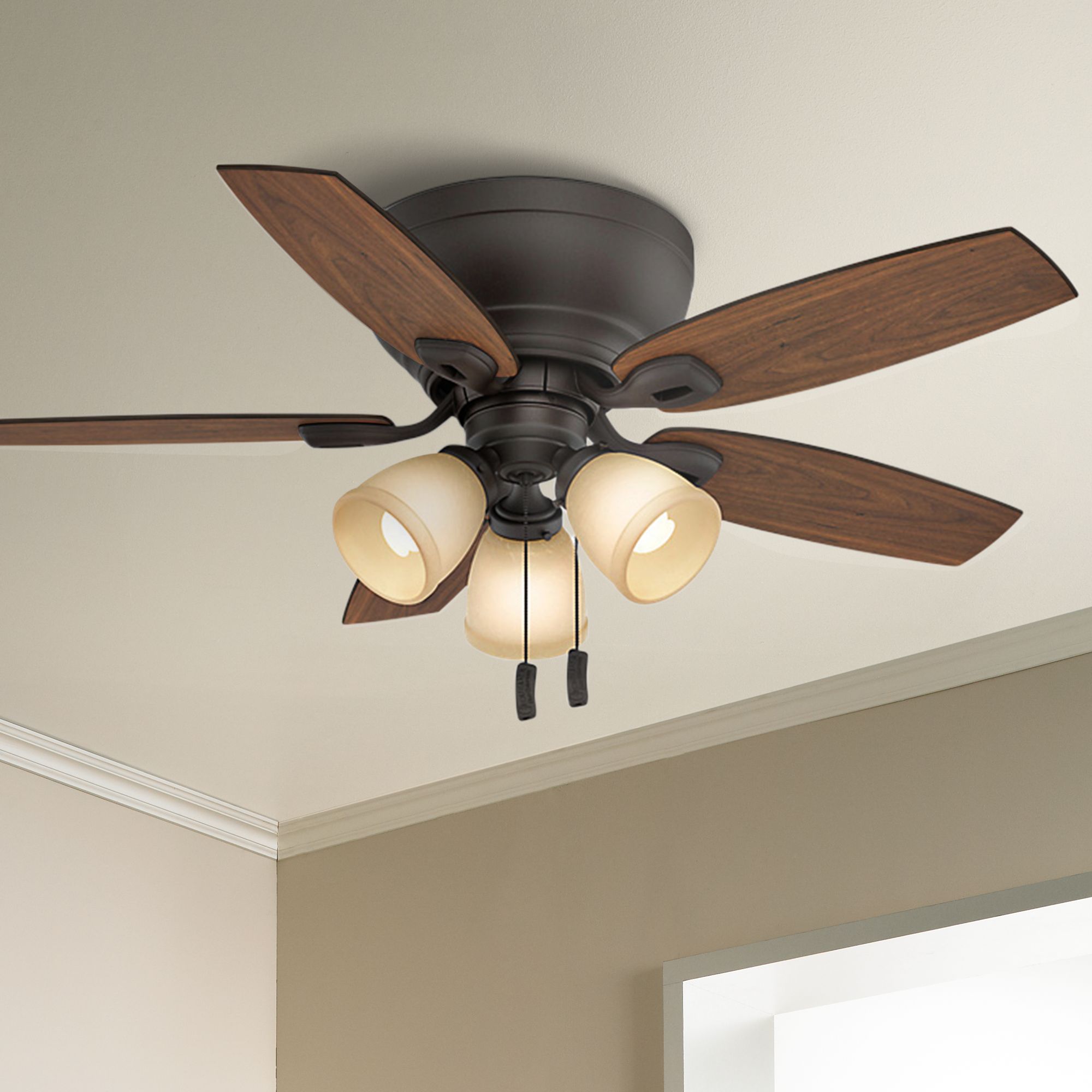 44" Casablanca Durant Bronze LED Hugger Ceiling Fan with Pull Chain