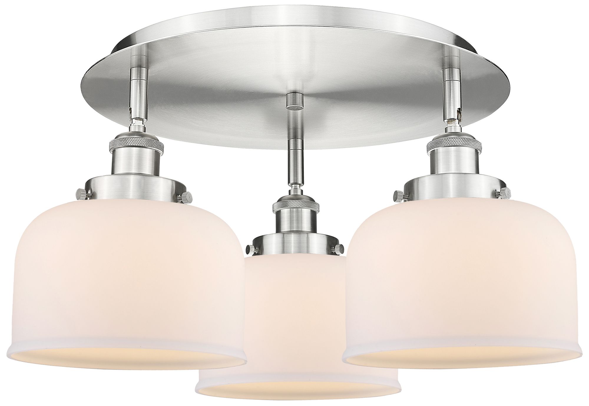 Bell 19.75"W 3 Light Satin Nickel Flush Mount With Matte White Glass S