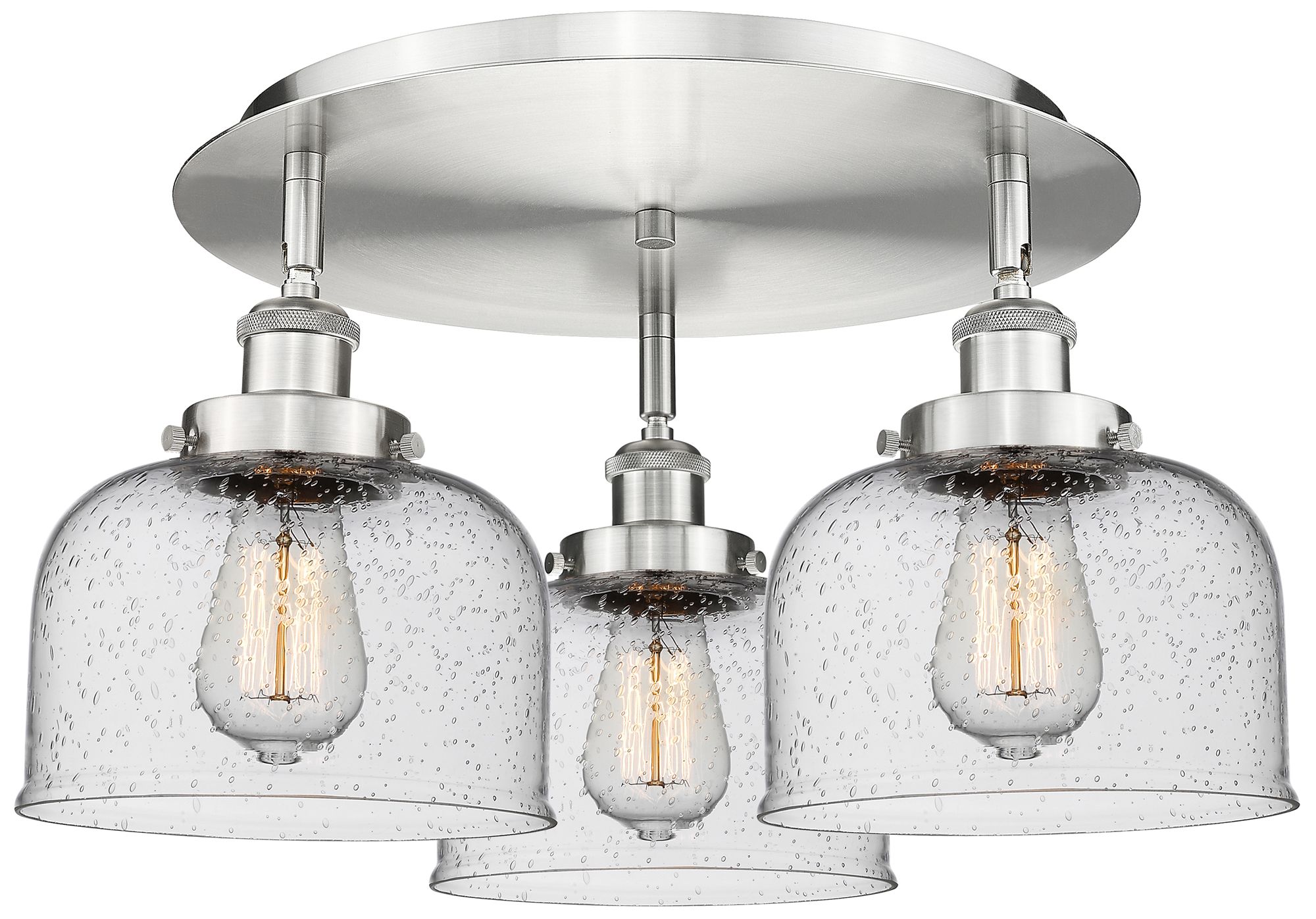 Bell 19.75" Wide 3 Light Satin Nickel Flush Mount With Seedy Glass Sha