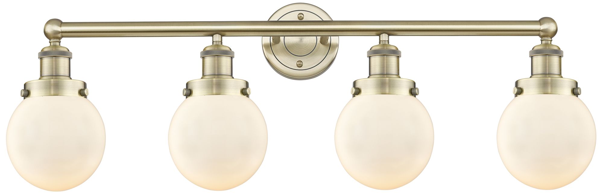 Small Beacon 33.5"W 4 Light Antique Brass Bath Light With White Shade