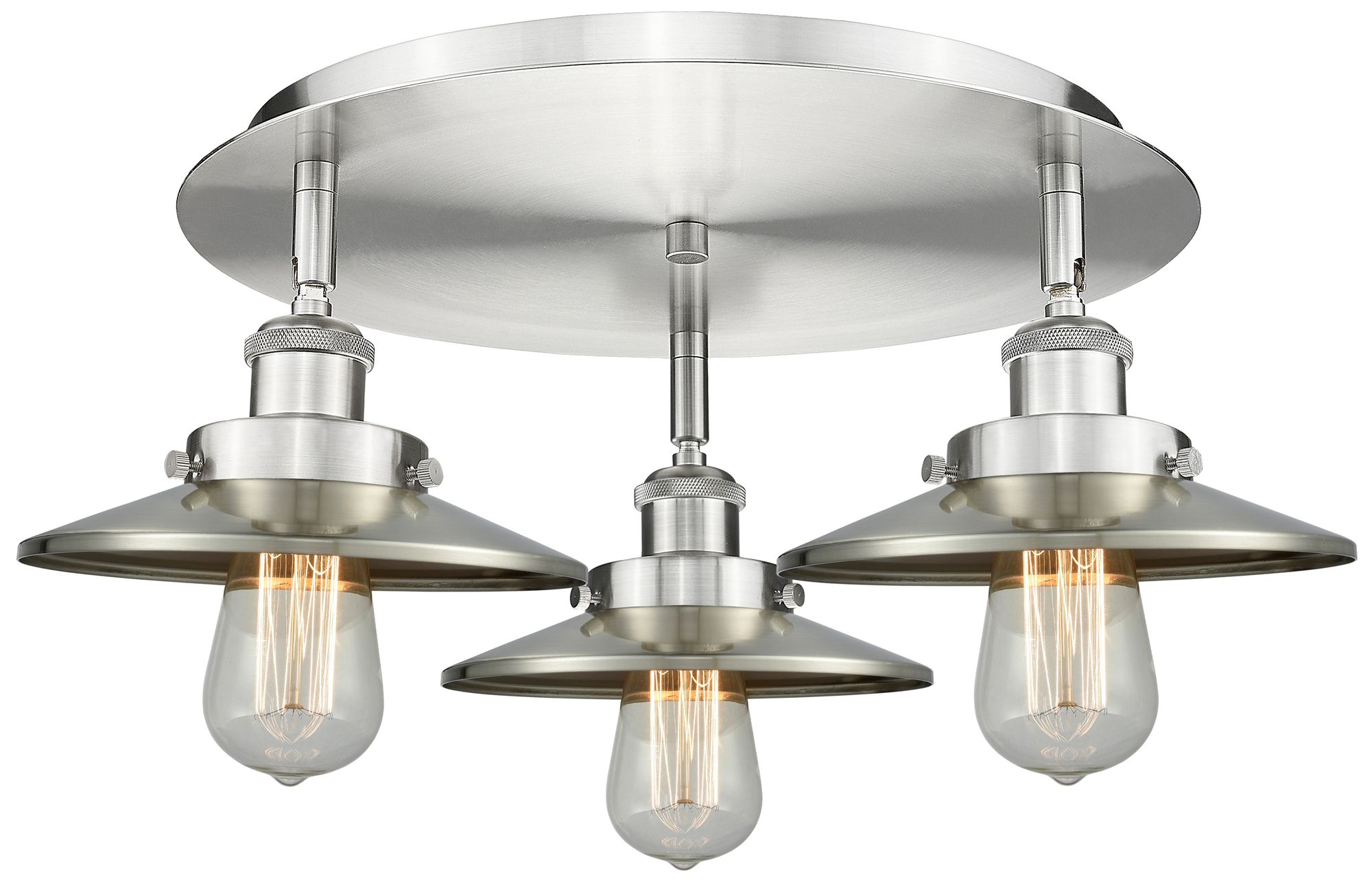 Ballston Urban 19.75"W 3 Light Satin Nickel Flush w/ Short Nickel Shad