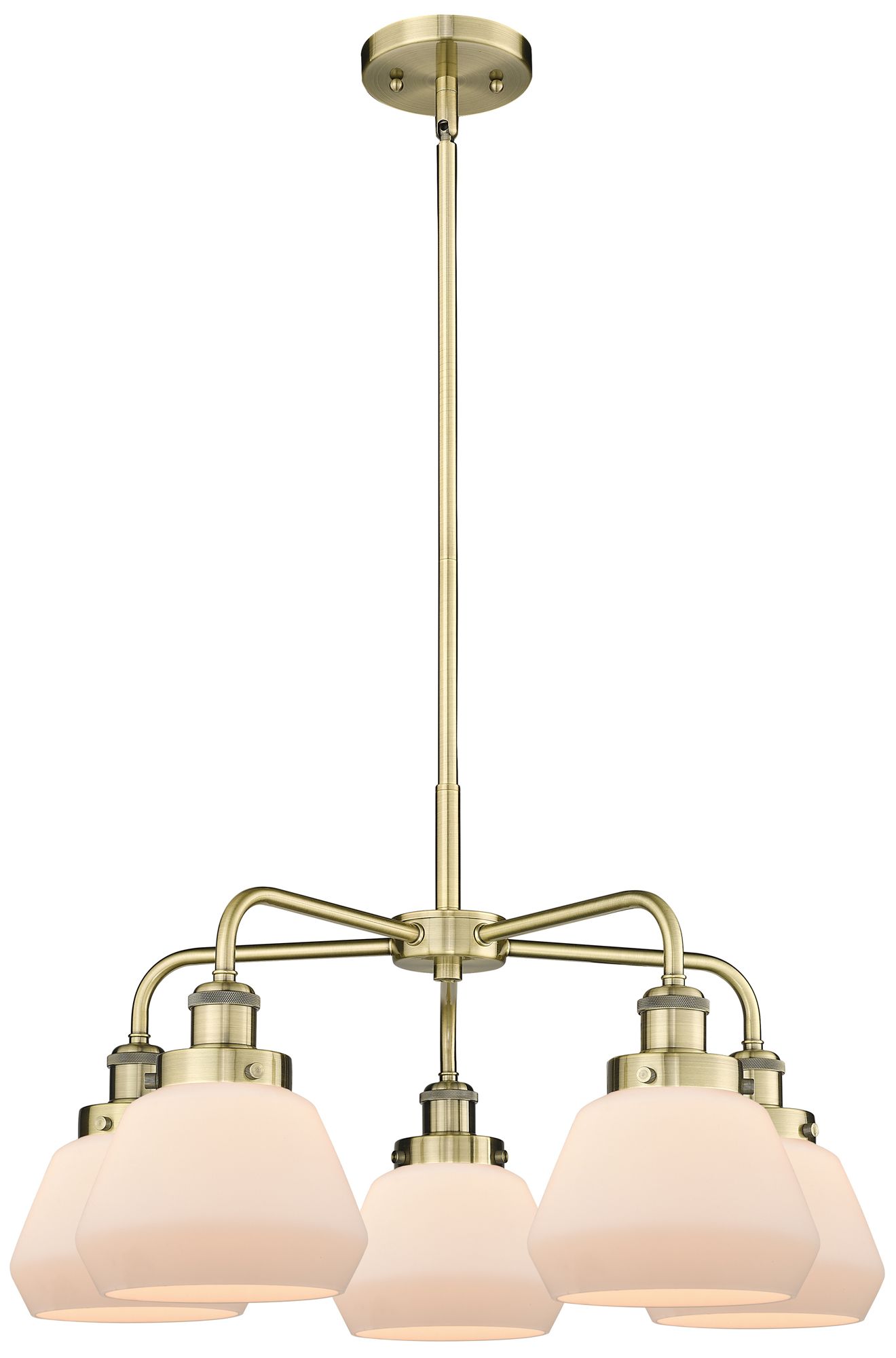 Fulton 24.5"W 5 Light Antique Brass Stem Hung Chandelier w/ White Shad