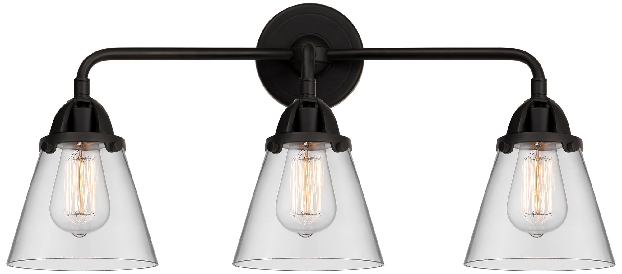 Nouveau 2 Cone 6" 3 Light 24" Bath Light - Matte Black - Clear Sh