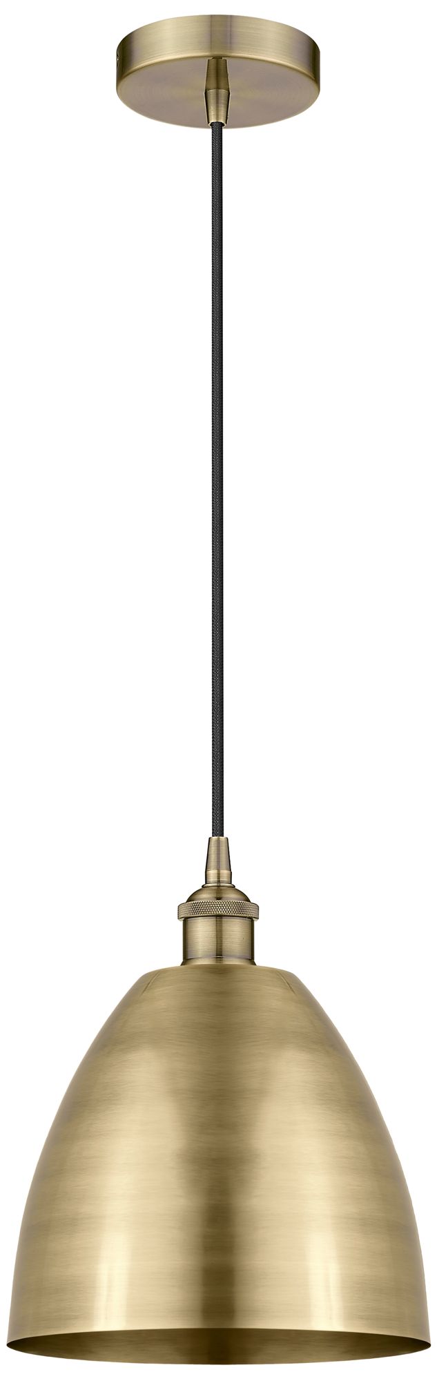Edison Dome 9"W Antique Brass Corded Mini Pendant w/ Antique Brass Sha
