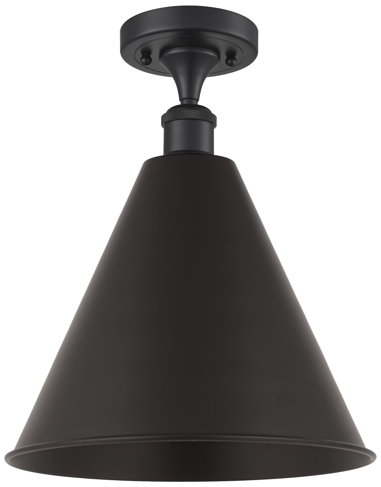 Ballston Cone 16" Semi-Flush Mount - Matte Black - Matte Black Shade