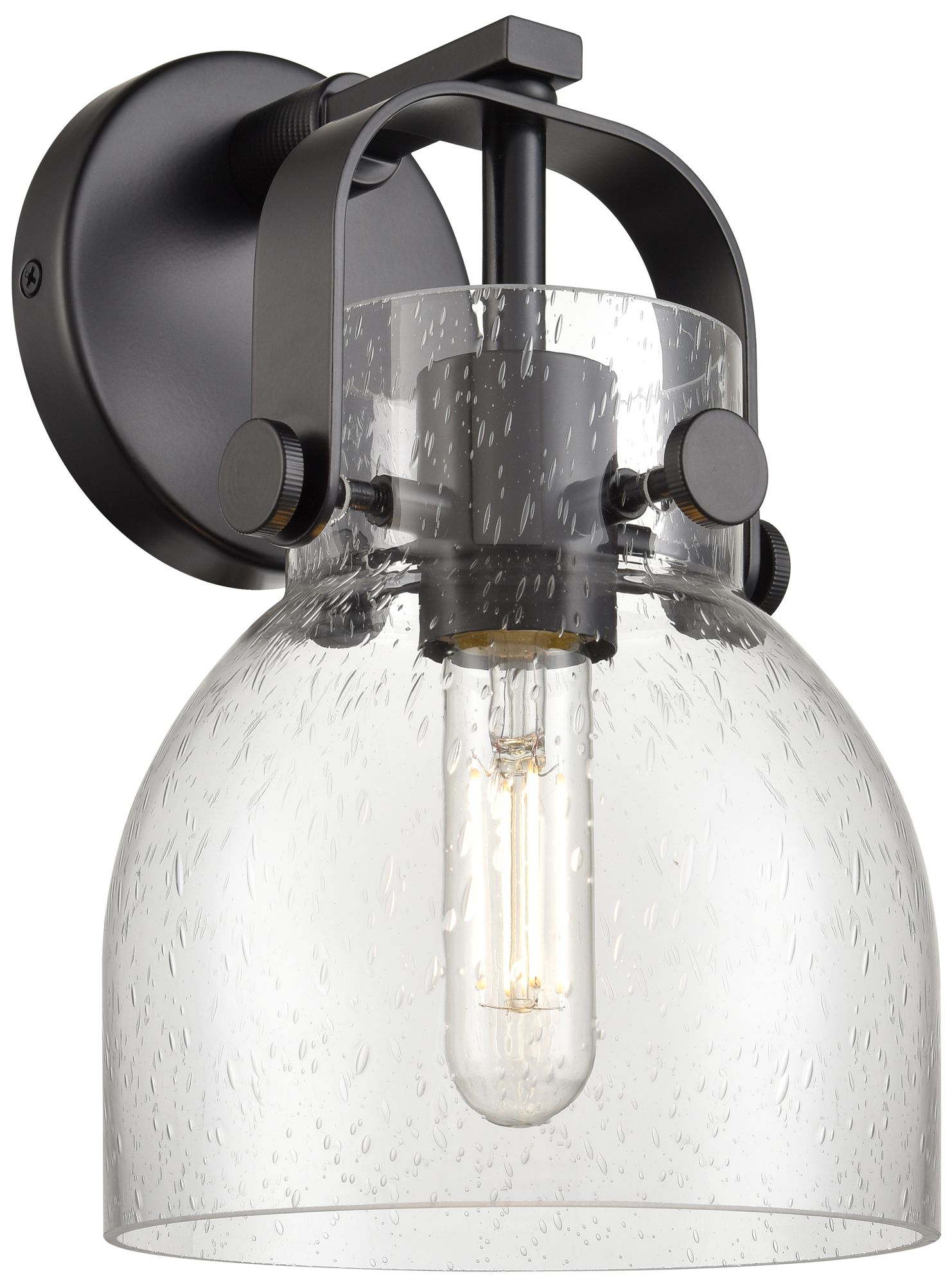 Pilaster II Bell 9.75" High Matte Black Sconce With Seedy Shade