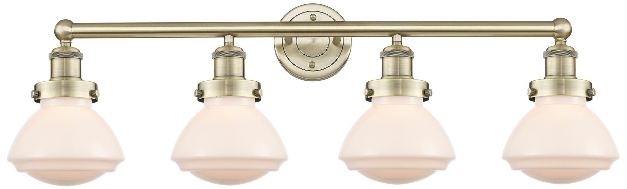 Olean 33.5"W 4 Light Antique Brass Bath Vanity Light With Matte White