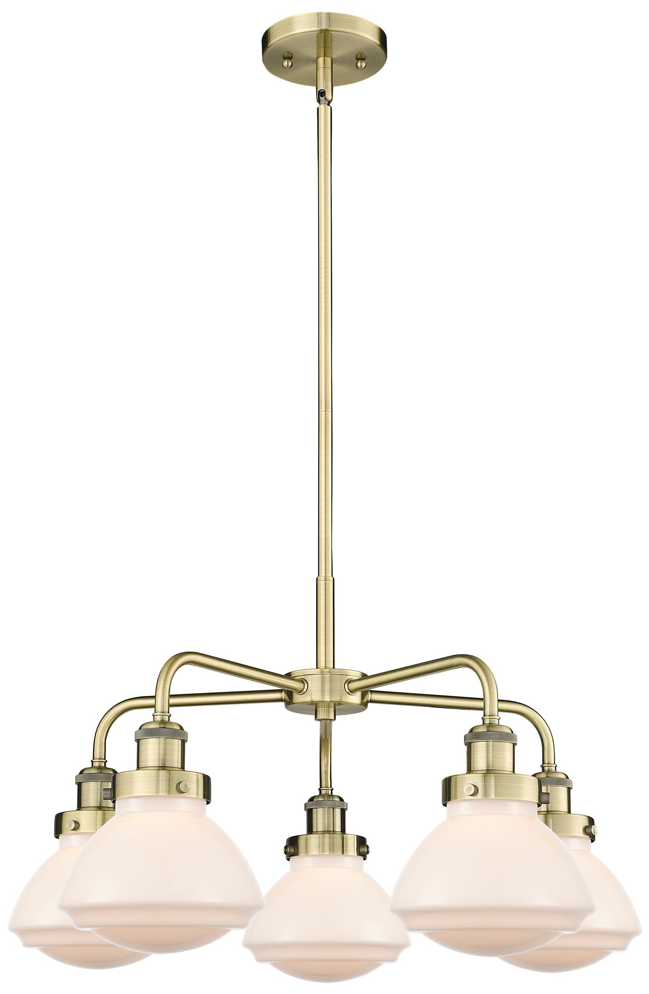 Olean 24.5"W 5 Light Antique Brass Stem Hung Chandelier w/ White Shade