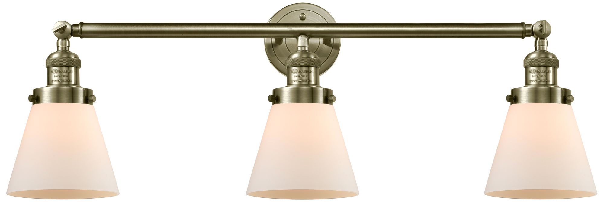 Cone 3 Light 30" LED Bath Light - Antique Brass - Matte White Shade