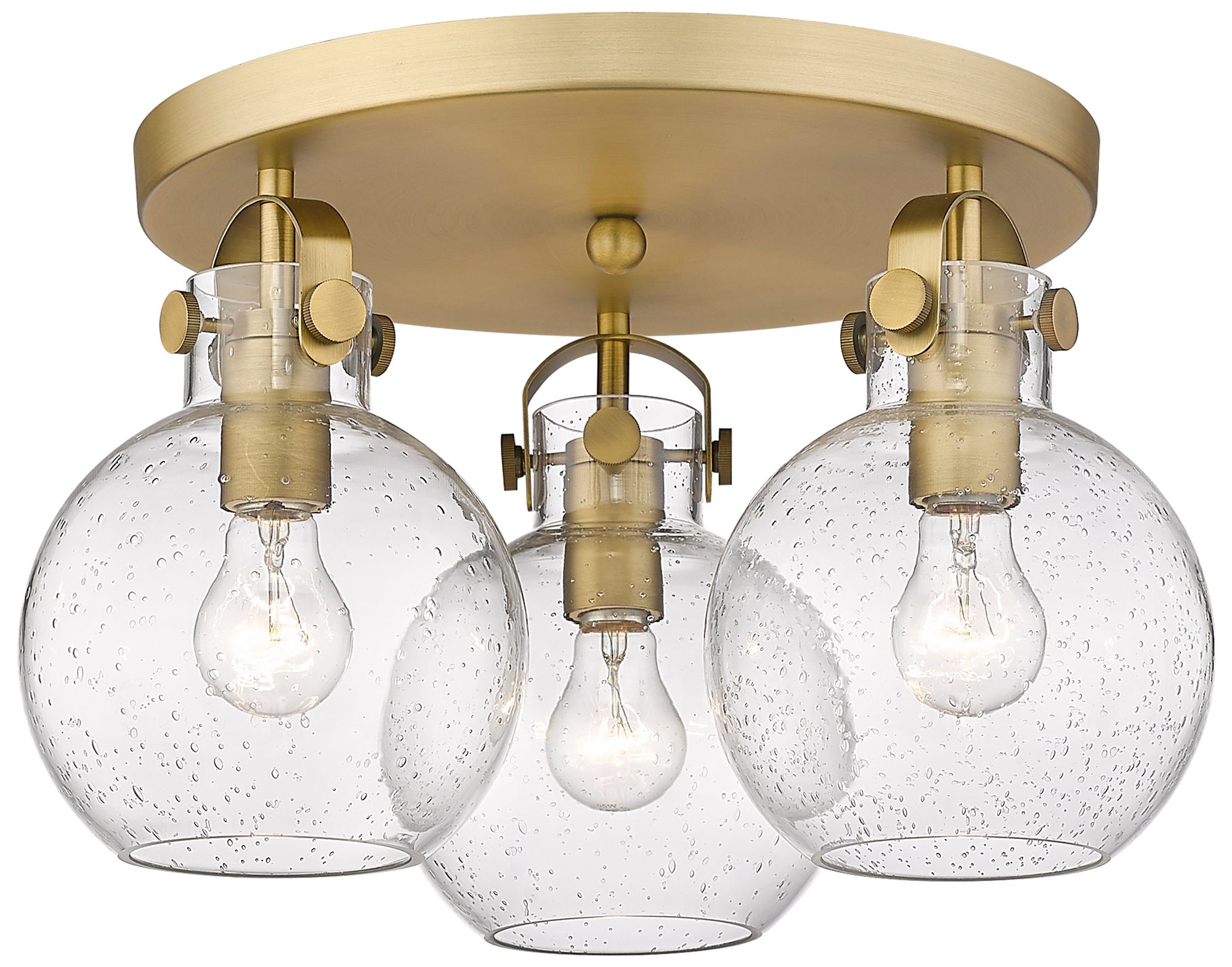 Newton Sphere 19.63"W 3 Light Brushed Brass Flush Mount With Seedy Sha