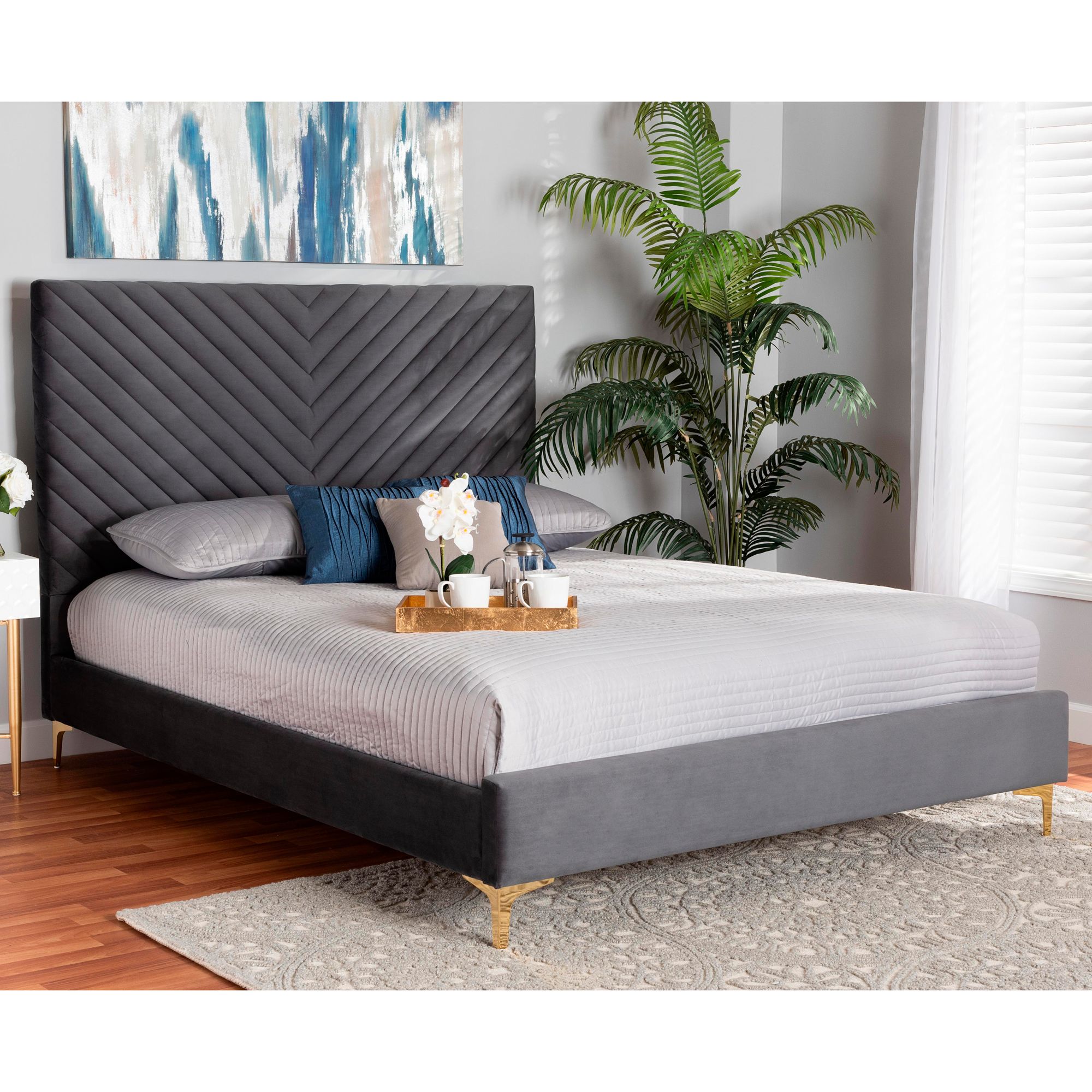 Fabrico Gray Velvet Fabric Tufted Full Size Platform Bed