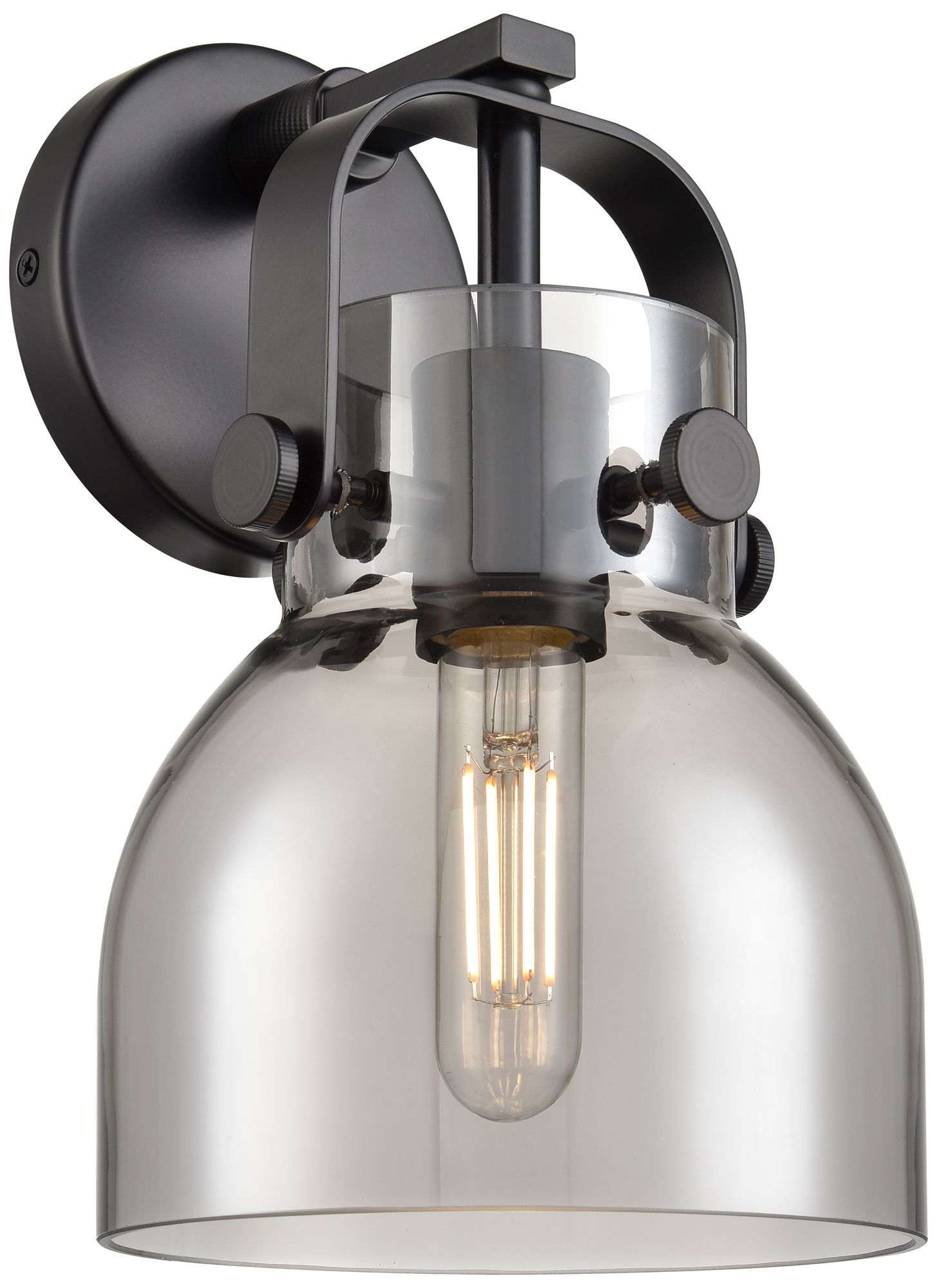 Pilaster II Bell 9.75" High Matte Black Sconce With Smoke Shade