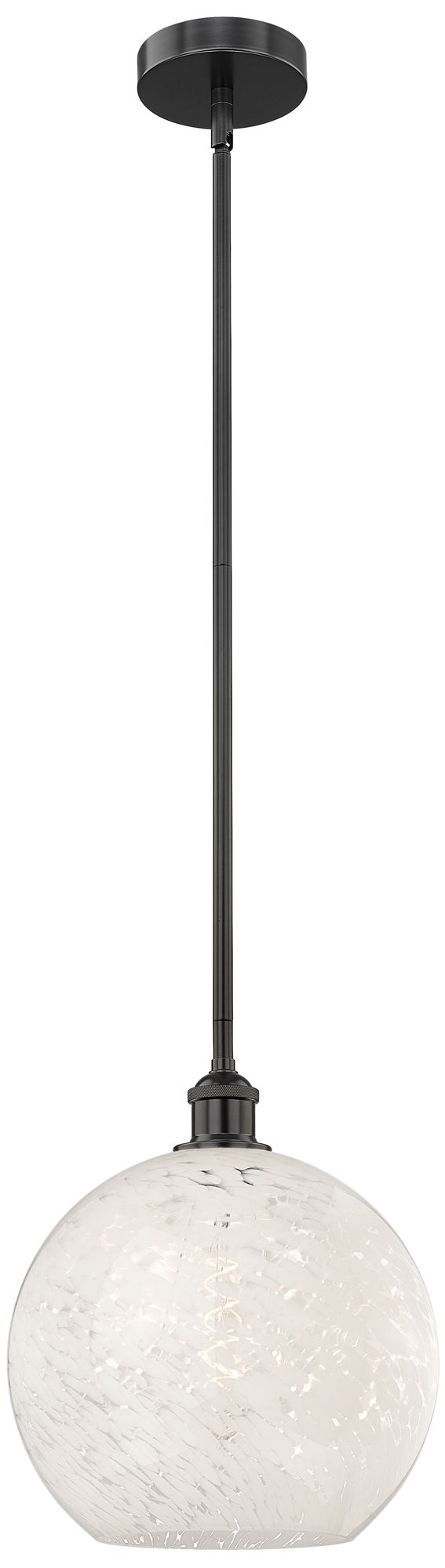 Edison 12" Wide Matte Black Stem Hung Pendant With White Mouchette Sha
